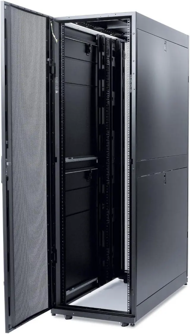 The APC AR3300X717 NetShelter SX 600 x 1200 mm Enclosure with Sides for low to medium density server and networking applications that either require additional equipment clearance space or more open space for ease of access in the rear of the enclosure. Compact width optimizes data center space. 42U height allows easily rolling through doorways.