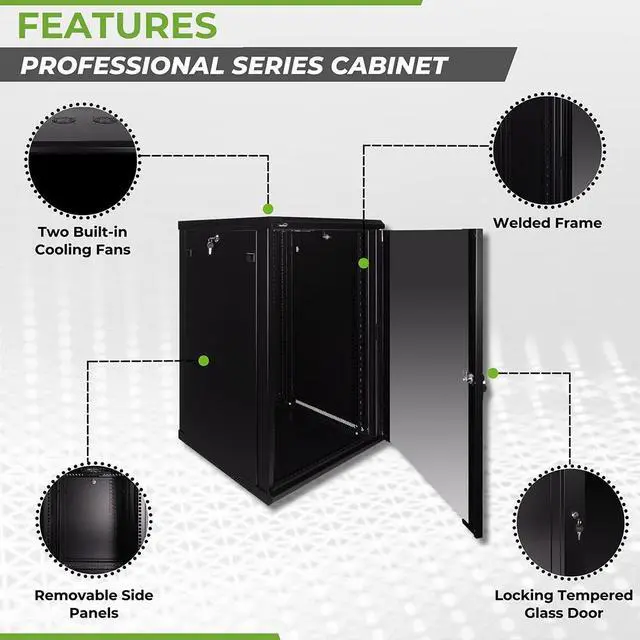 This 600mm depth cabinet by NavePoint is part of the Pro Series and can be wall-mounted or self standing and is great for organizing your networking equipment. It has removable side panels for easy access, along with venting slots to keep your equipment cool. Made of high-quality SPCC Cold Rolled Steel with electro-static powdered coated finish. Comes flat-packed and requires some assembly. Available in 6U, 9U, 12U, 15U and 18U configurations.