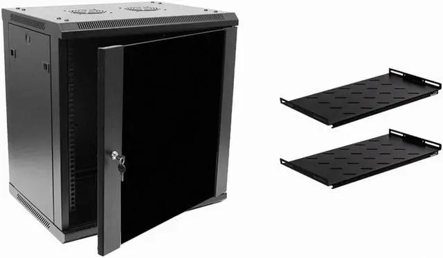 This 450mm depth cabinet by NavePoint is part of the Pro Series and can be wall-mounted or self standing and is great for organizing your networking equipment. It has removable, locking side panels for easy access, along with venting slots and (2) built-in fans to keep your equipment cool. Comes with (2) component shelves. Made of high-quality SPCC Cold Rolled Steel with electro-static powdered coated finish. Comes flat-packed and requires some assembly. Available in 6U, 9U, 12U, 15U and 18U configurations.