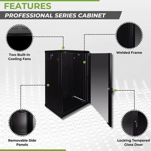 This 450mm depth cabinet by NavePoint is part of the Pro Series and can be wall-mounted or self standing and is great for organizing your networking equipment. It has removable, locking side panels for easy access, along with venting slots and (2) built-in fans to keep your equipment cool. Made of high-quality SPCC Cold Rolled Steel with electro-static powdered coated finish. Comes flat-packed and requires some assembly. Available in 6U, 9U, 12U, 15U and 18U configurations.