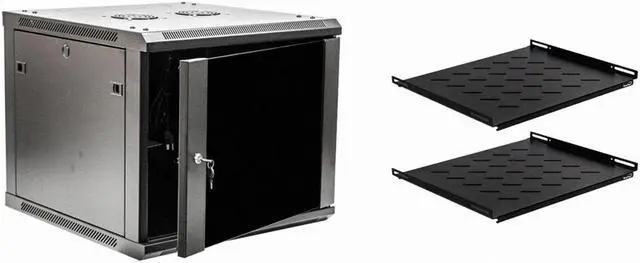 This 600mm depth cabinet by NavePoint is part of the Pro Series and can be wall-mounted or self standing and is great for organizing your networking equipment. It has removable, locking side panels for easy access, along with venting slots and (2) built-in fans to keep your equipment cool. Comes with (2) component shelves. Made of high-quality SPCC Cold Rolled Steel with electro-static powdered coated finish. Comes flat-packed and requires some assembly. Available in 6U, 9U, 12U, 15U and 18U configurations.