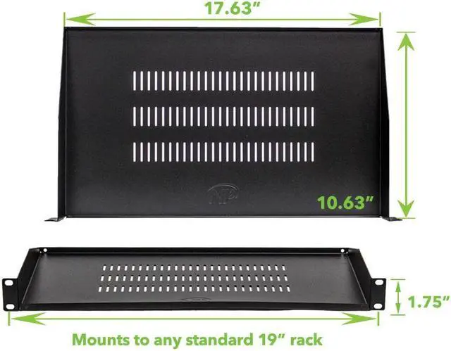 NavePoint cantilever shelves are available in a variety of sizes. Vented to reduce the possibility of overheating, these shelves will mount to any standard 19 inch rack or cabinet. Made of high quality cold rolled steel with an electro-static powder coated finish. Comes assembled. Includes 5 shelves.
