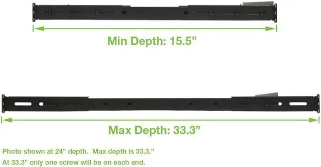 The NavePoint vented 4-post shelf made of high quality cold rolled steel is perfect for supporting non-rack mountable equipment. This shelf takes 1U rack space and has an adjustable depth of 21.7 to 33.3 inches. The adjustable shelf provides easy access for routers, modems, monitors, or tower computers.