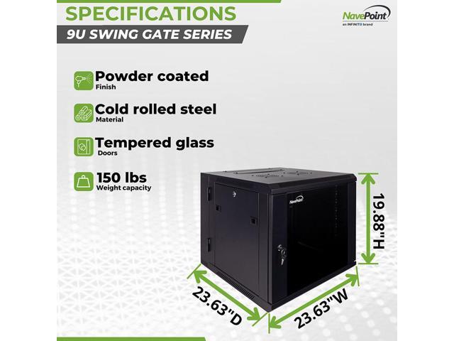 - CONVENIENT ACCESS: The NavePoint hinged cabinet swings away from the wall to allow easy rear access to equipment and cabling during and after installation. A revisable front door opens, left of right.