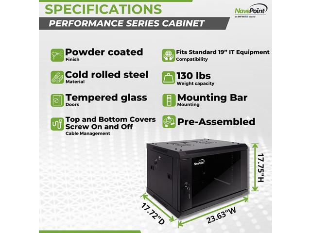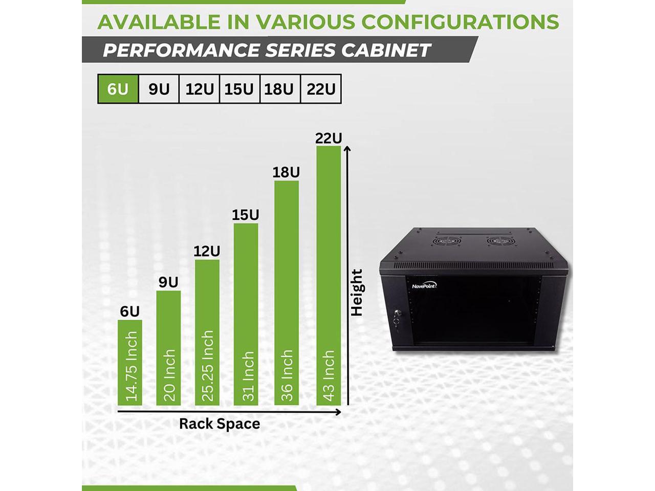 Navepoint 6U Wallmount IT Networking Enclosure 450mm Depth with Fans