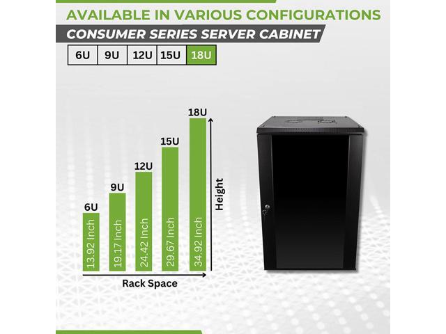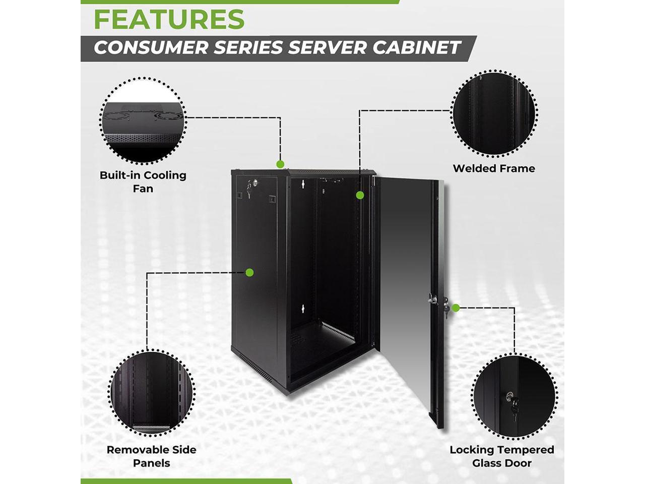 NavePoint 18U Wall Mount Consumer Series Server Cabinet Network Enclosure Locks, Fan