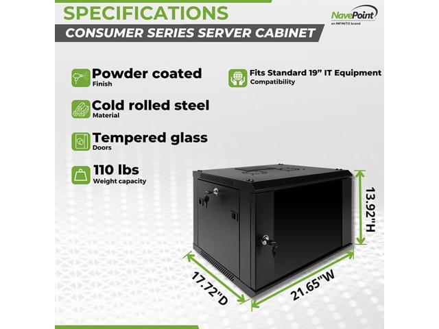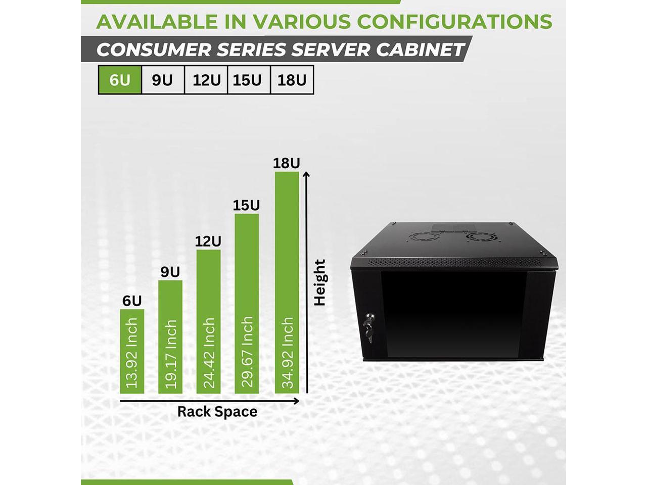 NavePoint 6U Wall Mount Consumer Series Server Cabinet Network Enclosure Locks, Fan