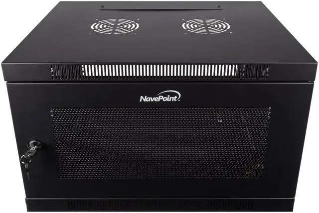 This cabinet by NavePoint can be wall-mounted or self standing and is great for organizing your networking equipment. Perforated side panels and door for peak efficiency in airflow. Made of high-quality SPCC Cold Rolled Steel. Comes fully assembled and ready to be wall mounted. Available in 6U, 9U, 12U, 15U and 18U configurations.