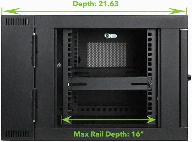 This 450mm depth cabinet with 6U of rack space by NavePoint is part of the Swing Gate Series and can be wall-mounted or self standing. It has removable, perforated locking side panels for easy access and peak airflow efficiency and a rear swing frame allowing easy access to equipment and cabling.