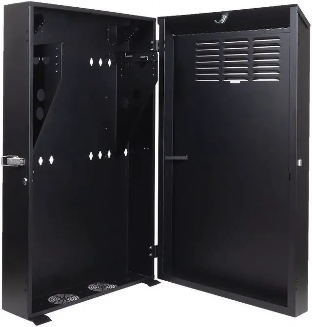 These enclosures have a low profile due to their vertical mounting configuration and feature cable management punchouts, ventilation and a dedicated location for mounting of a patch panel in addition to the available rack units. Mounting rails feature both cage nut or 12-24 mounting options to suit your preference. These rails are detachable to easily allow for equipment removal and maintenance when needed. Ships completely assembled and ready to mount.