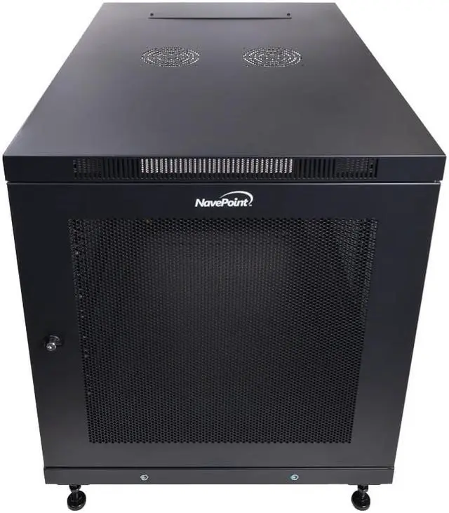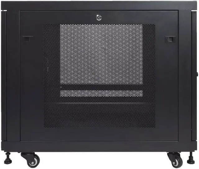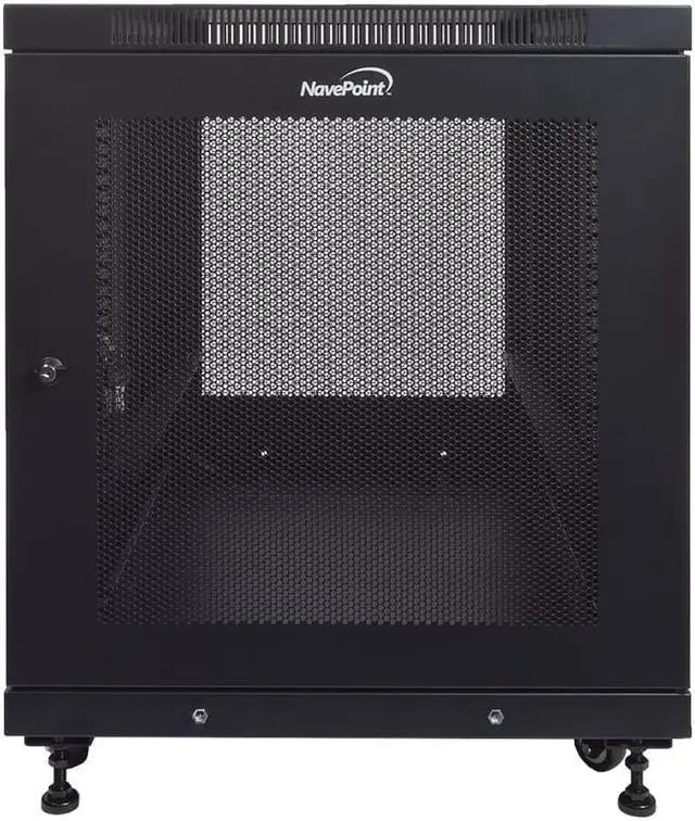 NavePoint 12U Rack Enclosure Server Cabinet Mid Depth 33" Deep Perforated Door Lock and Casters Black