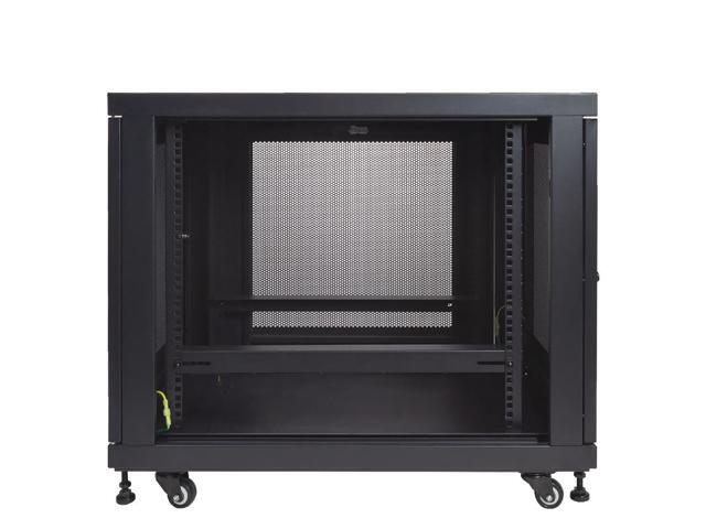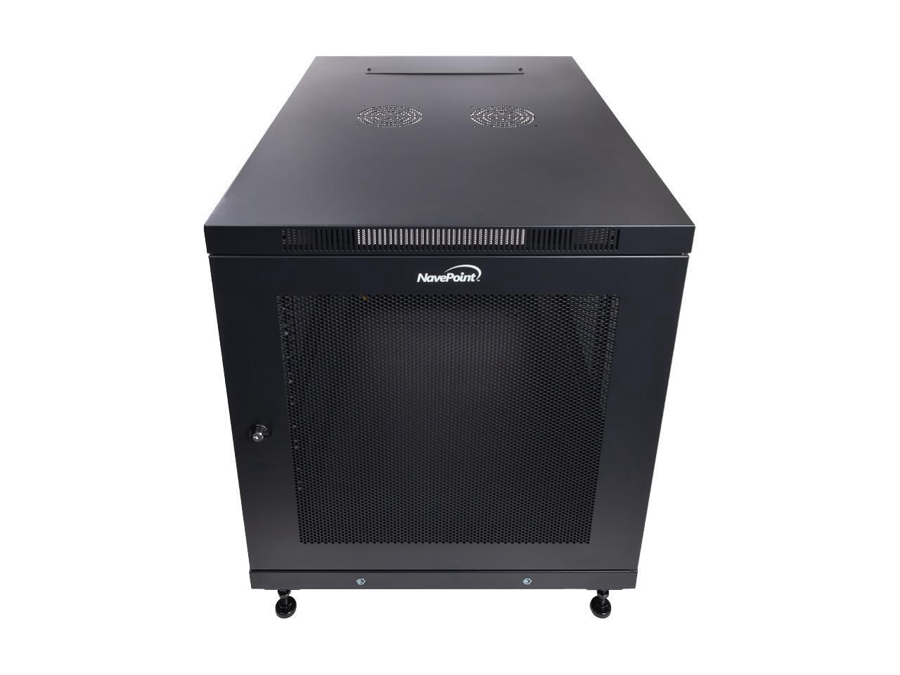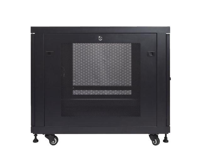 NavePoint 12U Rack Enclosure Server Cabinet Mid Depth 33" Deep Perforated Door Lock and Casters Black
