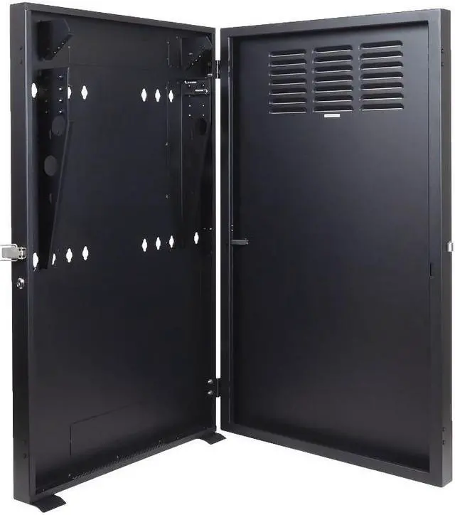These enclosures have a low profile due to their vertical mounting configuration and feature cable management punchouts, ventilation and a dedicated location for mounting of a patch panel in addition to the available rack units. Mounting rails feature both cage nut or 12-24 mounting options to suit your preference. These rails are detachable to easily allow for equipment removal and maintenance when needed. Ships completely assembled and ready to mount.