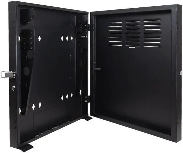 These enclosures have a low profile due to their vertical mounting configuration and feature cable management punchouts, ventilation and a dedicated location for mounting of a patch panel in addition to the available rack units. Mounting rails feature both cage nut or 12-24 mounting options to suit your preference. These rails are detachable to easily allow for equipment removal and maintenance when needed. Ships completely assembled and ready to mount.
