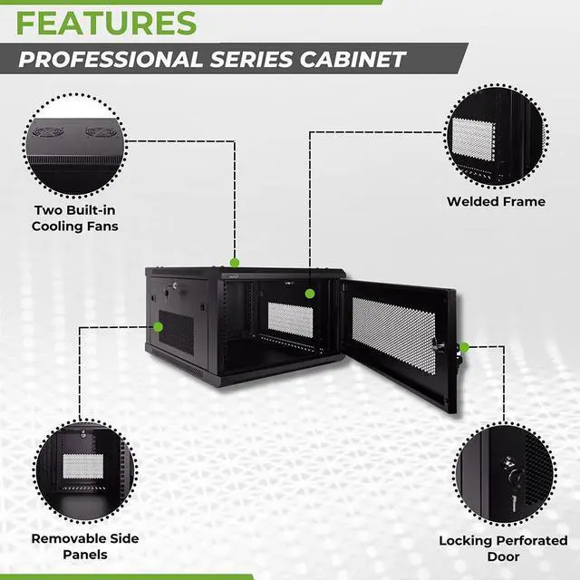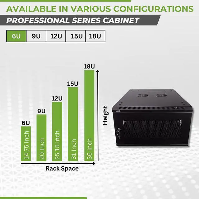 This 600mm depth cabinet by NavePoint is part of the Pro Series and can be wall-mounted or self standing and is great for organizing your networking equipment. It has removable side panels for easy access, along with venting slots to keep your equipment cool. Made of high-quality SPCC Cold Rolled Steel with electro-static powdered coated finish. Comes flat-packed and requires some assembly. Available in 6U, 9U, 12U, 15U and 18U configurations.