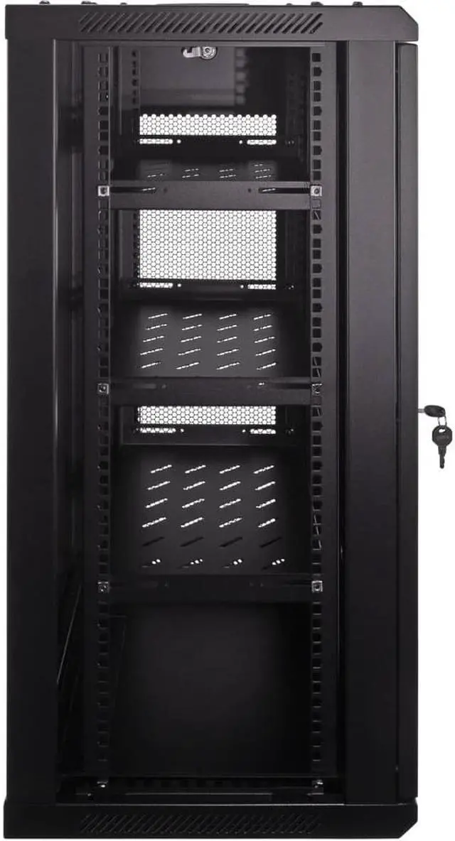 This 450mm depth cabinet by NavePoint is part of the Pro Series and can be wall-mounted or self standing and is great for organizing your networking equipment. It has removable, locking side panels for easy access, along with venting slots and (2) built-in fans to keep your equipment cool. Comes with (3) component shelves. Made of high-quality SPCC Cold Rolled Steel with electro-static powdered coated finish. Comes flat-packed and requires some assembly. Available in 6U, 9U, 12U, 15U and 18U configurations.