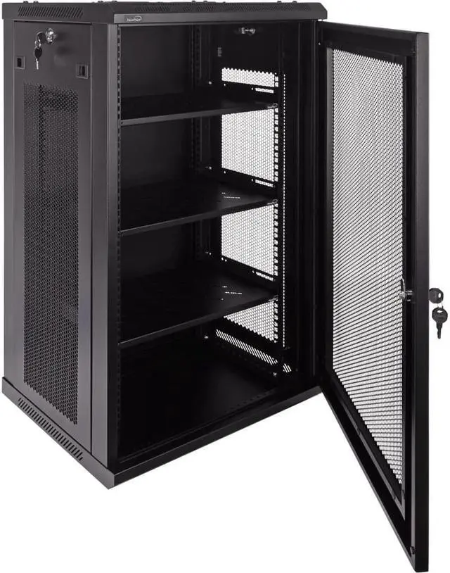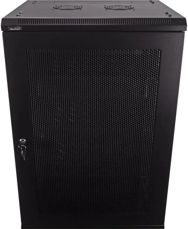 Navepoint 18U Wallmount Networking Perforated Cabinet 450mm Depth with Shelves, Fans