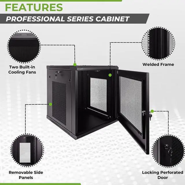 This 600mm depth cabinet by NavePoint is part of the Pro Series and can be wall-mounted or self standing and is great for organizing your networking equipment. It has removable side panels for easy access, along with venting slots to keep your equipment cool. Made of high-quality SPCC Cold Rolled Steel with electro-static powdered coated finish. Comes flat-packed and requires some assembly. Available in 6U, 9U, 12U, 15U and 18U configurations.