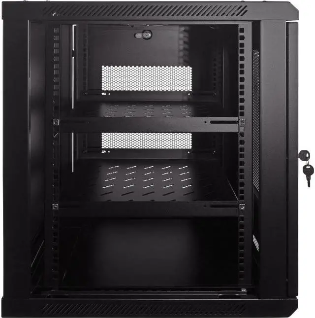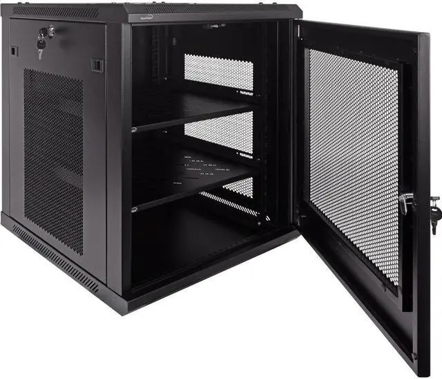 This 600mm depth cabinet by NavePoint is part of the Pro Series and can be wall-mounted or self standing and is great for organizing your networking equipment. It has removable, locking side panels for easy access, along with venting slots and (2) built-in fans to keep your equipment cool. Comes with (2) component shelves. Made of high-quality SPCC Cold Rolled Steel with electro-static powdered coated finish. Comes flat-packed and requires some assembly. Available in 6U, 9U, 12U, 15U and 18U configurations.