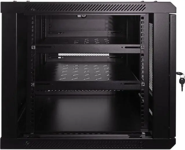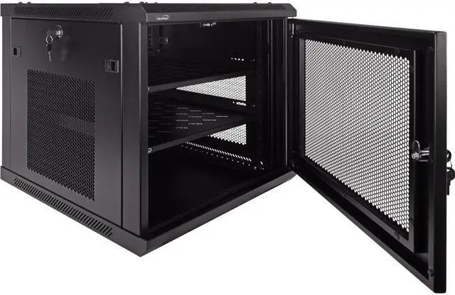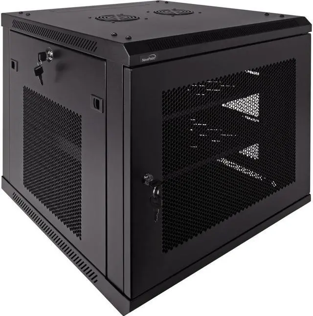 This 600mm depth cabinet by NavePoint is part of the Pro Series and can be wall-mounted or self standing and is great for organizing your networking equipment. It has removable, locking side panels for easy access, along with venting slots and (2) built-in fans to keep your equipment cool. Comes with (2) component shelves. Made of high-quality SPCC Cold Rolled Steel with electro-static powdered coated finish. Comes flat-packed and requires some assembly. Available in 6U, 9U, 12U, 15U and 18U configurations.