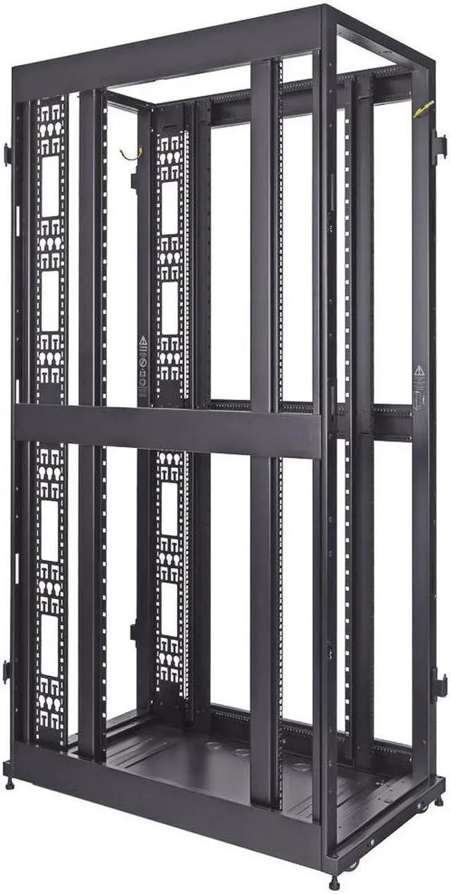 Reversible and lockable front door is glass for visibility and split style French rear doors is perforated to allow for increased airflow. There are 4 quick release, lockable side panels, which allow for easy access to equipment. The included full height cable management rails allow for a tidy installation.