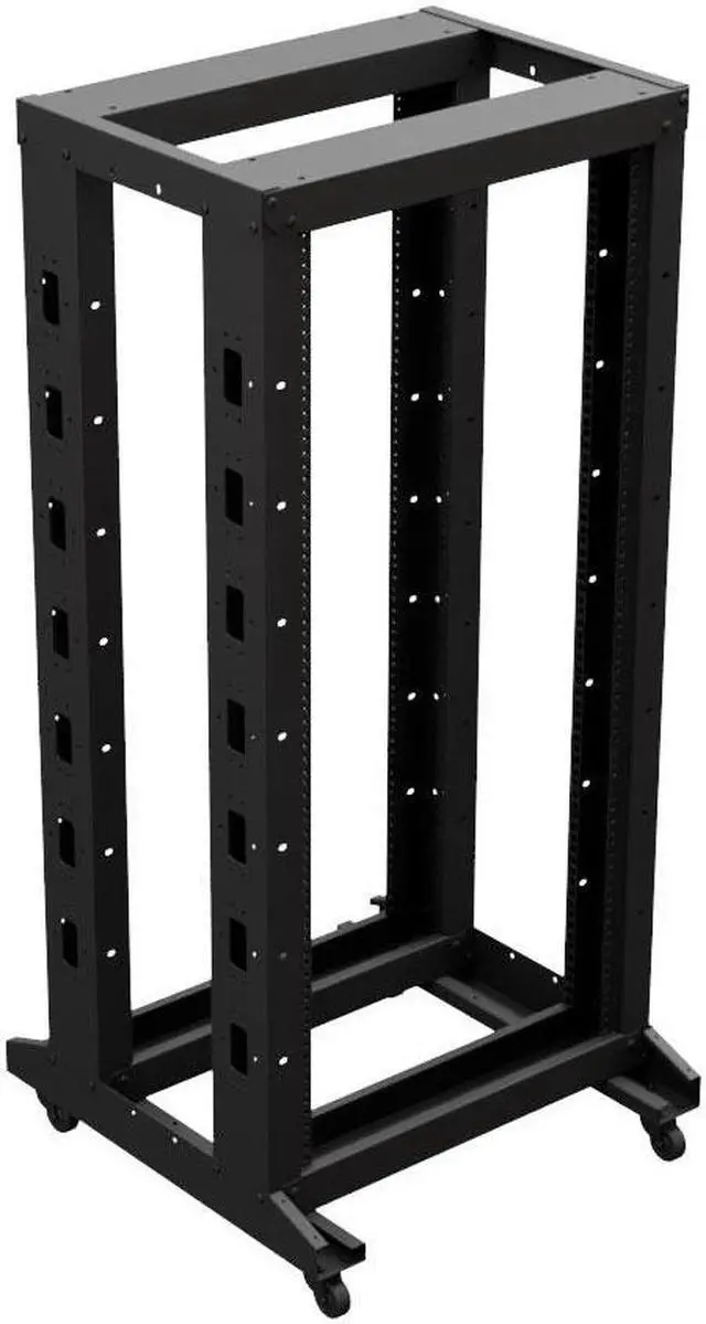 NavePoint's 4-post rack is a 19" mounting rack that provides a sturdy and cost-effective solution for supporting large rack-mountable network communication equipment in telecom or data rooms and other network facilities. The 25U four-post rack has a maximum adjustable mounting depth of 15.77 in, providing the flexibility to accommodate small and large equipment. This 4-post network rack has an open frame that's designed for flexibility, allowing you to choose the server rack options that are ideal for your network setup.
