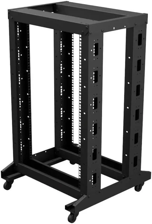 The caster-included adjustable server rack enables you to preconfigure racks and then move them into the desired place, two of these casters have a lock that helps to immobilize the equipment. Constructed of heavy-duty 14 gauge cold-rolled steel with a black, powder-coated finish, this rack delivers excellent utility and durability for your installation. This network rack has an overall dimension of 23.6 in x 23.6 in x 40.0 in and has an adjustable depth, which provides flexibility to handle full-size servers.