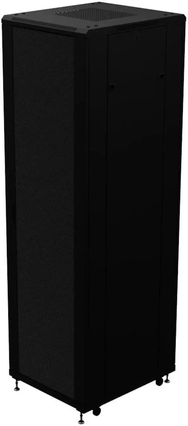 The floor mount caster-included adjustable cabinet enables you to preconfigure racks and then move them into the desired place. These 42U, black cabinets are suitable for AV system installers. The 14 gauge cold-rolled steel audio component racks have swivel casters for mobility, and adjustable feet for use when the fully racked cabinet needs to stay in place. The mounting rails are 10-32 threaded round holes and have RU markings.