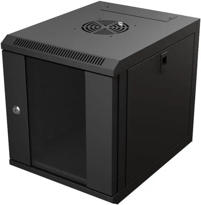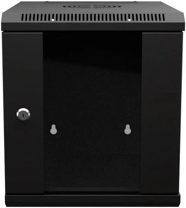 This network cabinet is more compact than standard 19-inch cabinets. The 15.75 rack depth wall-mount enclosure mounts deeper 10-inch server equipment in space-challenging locations like a back-office closet. The glass door of the black network cabinet comes with a clean design to bring professional look to your build.