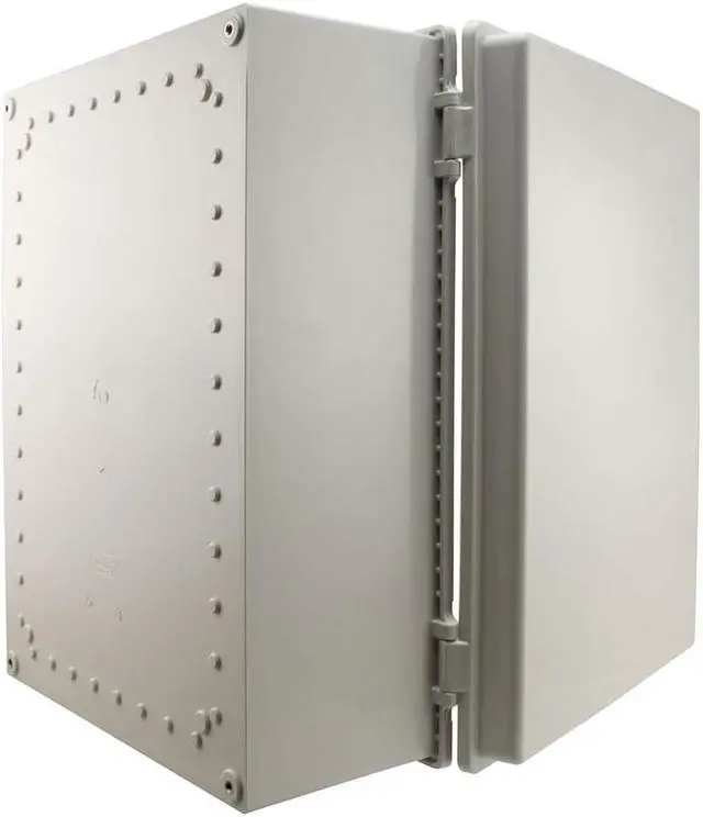 Constructed with a high-impact, UV-stabilized ABS material that delivers superior durability to impact the ease of modification while maintaining a minimum weight, this IP66 NEMA enclosure is well suited for high-temperature or corrosive environments. The NEMA enclosure has raised lid which features a 2-part molded hinge and molded quick release latches with a locking hasp on the lid.