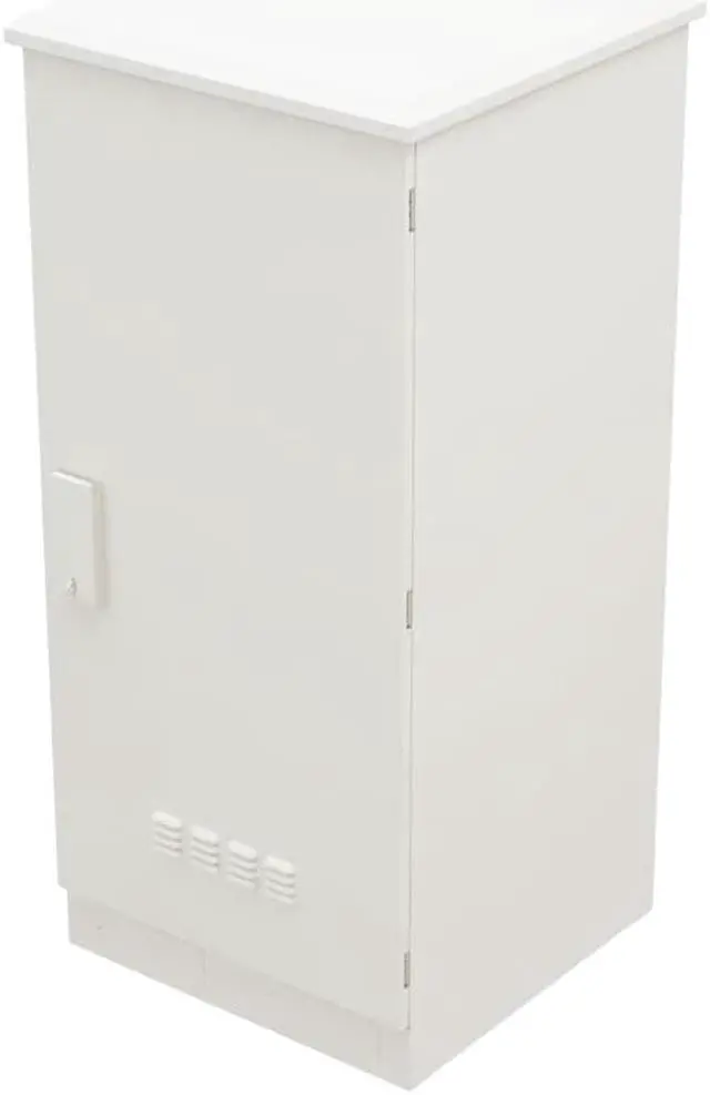 The NavePoint outdoor network cabinet has built-in fans with temperature control and flow-through ventilation that keeps your equipment safe from overheating. The floor mount IP66 cabinet comes in white color with 54 Inch (1,371.6 mm) height, 25 Inch (635 mm) width & 25 Inch (635 mm) depth and is suitable for schools, businesses, IT shops, and data centers. You can install mounting rails to the 9U outdoor cabinet with a cage nut bolt.