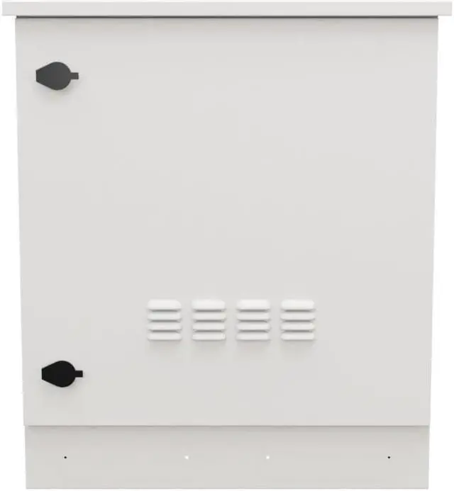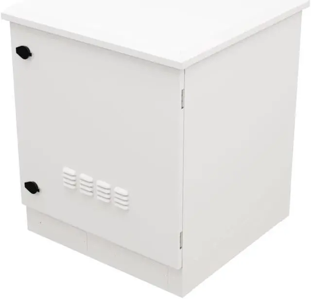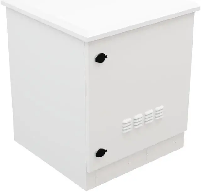 The NavePoint outdoor network cabinet has built-in fans with temperature control and flow-through ventilation that keeps your equipment safe from overheating. The floor mount IP66 cabinet comes in white color with 29 Inch (736.6 mm) height, 25 Inch (635 mm) width & 25 Inch (635 mm) depth and is suitable for schools, businesses, IT shops, and data centers. You can install mounting rails to the 9U outdoor cabinet with a cage nut bolt.