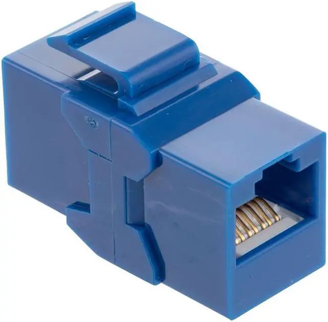 The CAT6A keystone coupler is available in a package quantity of 10 to simplify the installation when populating multiple slots in a rack, panel, or wall plate. These blue RJ45 couplers are constructed of high-impact and fire-retardant high-temperature ABS with Phosphor Bronze, Tin Plated contacts. These UTP inline couplers are compatible with voice, home networking, audio, and video devices.