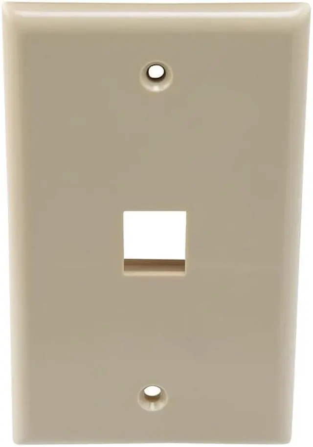The NavePoint snap-in keystone jack wall plate is suitable for 1-gang boxes and keystone modules such as audio/video, voice, or Ethernet cable. This face plate is made of self-extinguished ABS plastic and comes with a 1-port to fit your needs. This wall plate has ivory color that perfectly blends into your home or office decor.