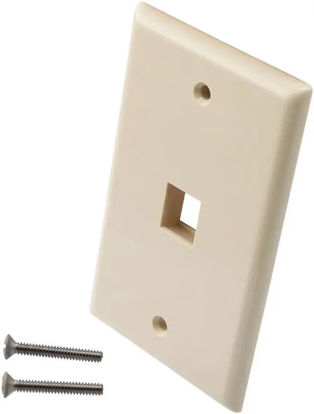 To ensure a professional-looking installation, this 1-port wall plate has a low-profile design that shields and conceals your network connections. All snap-in keystone jacks and couplers are supported by this face plate. The modern flush design wall plate, which comes in a box of 10, offers a sleek appearance. For wall mounting, this face plate is supplied with 2 screws.