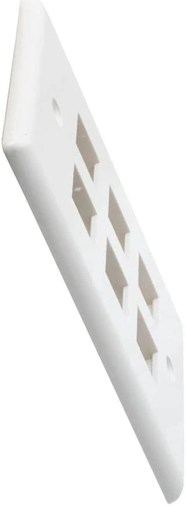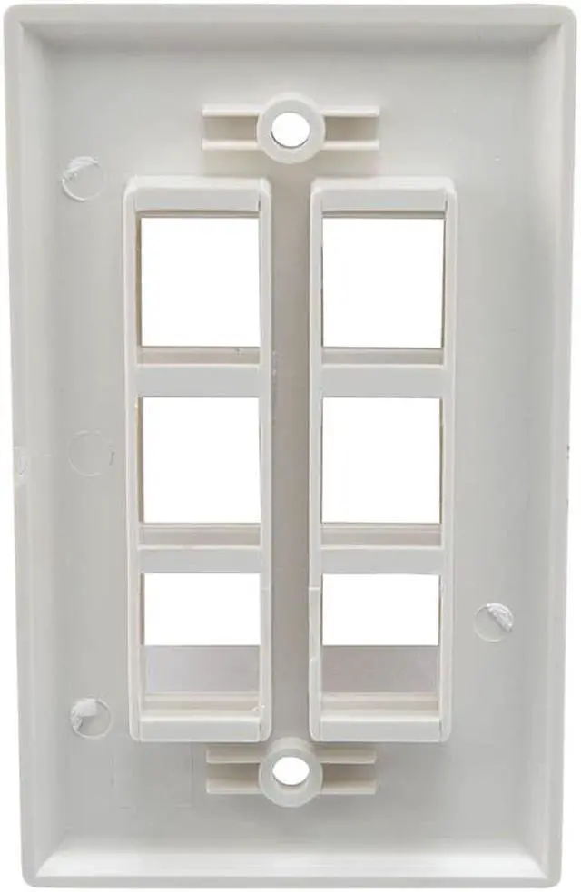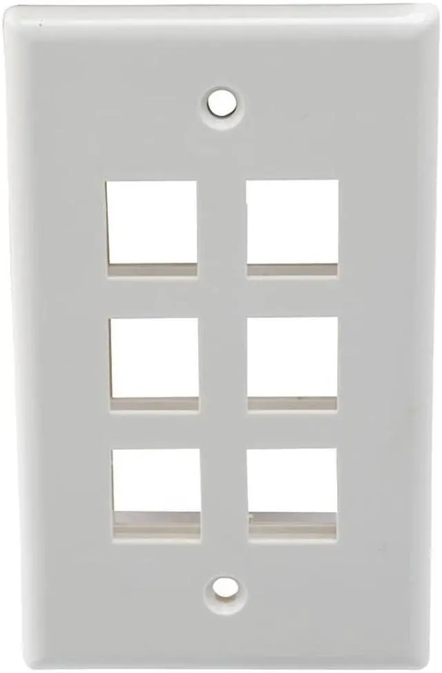 The NavePoint snap-in keystone jack wall plate is suitable for 1-gang boxes and keystone modules such as audio/video, voice, or Ethernet cable. This face plate is made of self-extinguished ABS plastic and comes with a 6-port to fit your needs. This wall plate has white color that perfectly blends into your home or office decor.