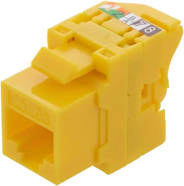 This 25-pack keystone jack provides data transfer rates of up to 10 GBPS at a maximum bandwidth of 500 MHz. For ease of installation, our CAT6A toolless keystone jack is offered in different colors and is backwards compatible with CAT6, CAT5e, and CAT5 ethernet cables. The snap-in RJ45 female keystone jack is ANSI/TIA/EIA568B compliant and ideal for server rooms, rack panels, a/v installations, conference rooms, IT, premise installations, schools and telecommunications.