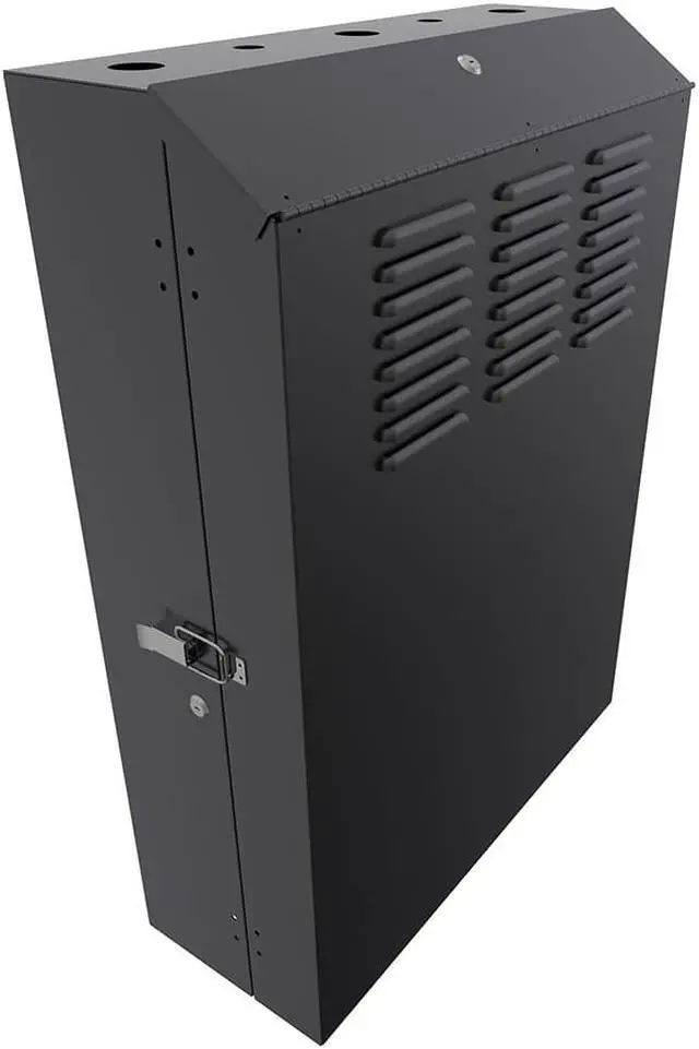 The NavePoint vertical wall-mount enclosure comes pre-assembled to organize and secure your 19'' standard rack-mount servers and networking equipment. Constructed of heavy-duty 16 gauge cold-rolled steel with a black, electro-static powder coated finish, this enclosure delivers excellent utility and durability for your installation. This vertical cabinet offers a switch depth ranging from 24.6 inches (625mm) to 27.5 inches (700mm) to accommodate network switches and patch panels. The vertical wall-mount enclosure mounting rails support up to 132.27 lbs.