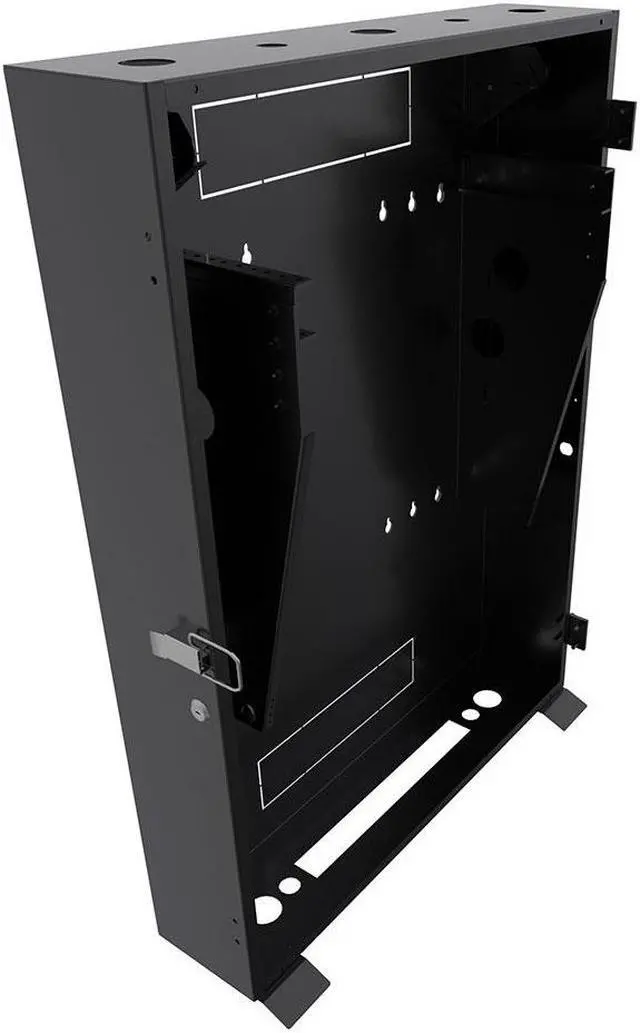 The NavePoint vertical wall-mount enclosure comes pre-assembled to organize and secure your 19'' standard rack-mount servers and networking equipment. Constructed of heavy-duty 16 gauge cold-rolled steel with a black, electro-static powder coated finish, this enclosure delivers excellent utility and durability for your installation. This vertical cabinet offers a switch depth ranging from 24.6 inches (625mm) to 27.5 inches (700mm) to accommodate network switches and patch panels. The vertical wall-mount enclosure mounting rails support up to 132.27 lbs.