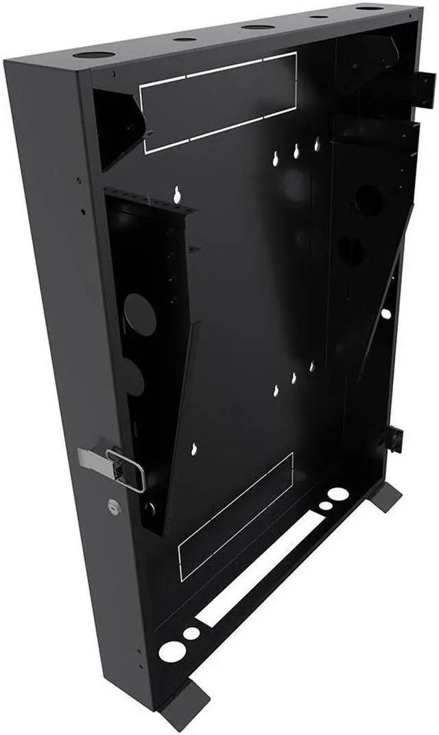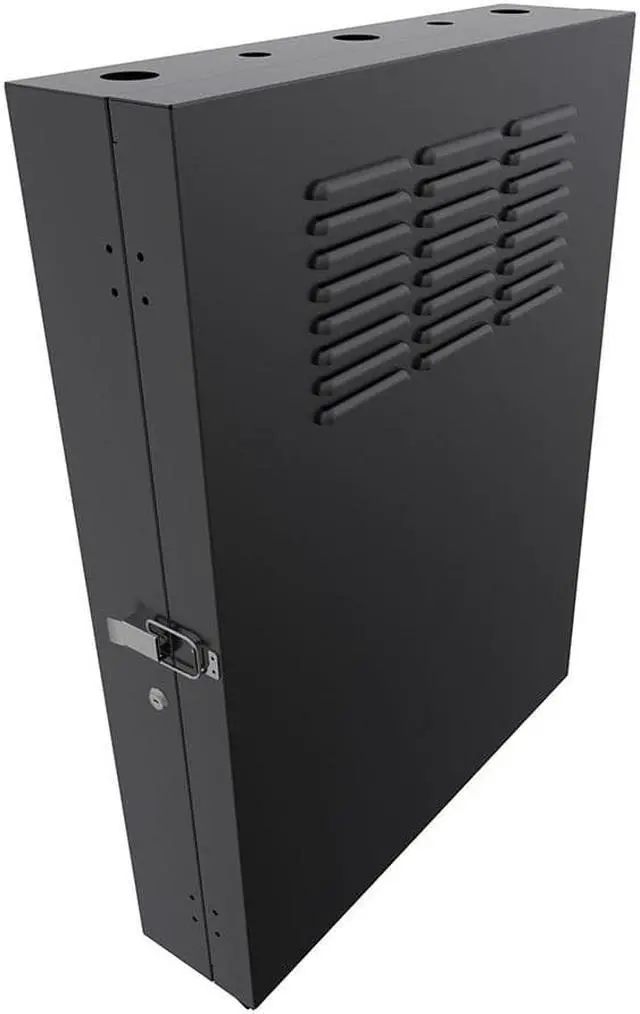 The NavePoint vertical wall-mount enclosure comes pre-assembled to organize and secure your 19'' standard rack-mount servers and networking equipment. Constructed of heavy-duty 16 gauge cold-rolled steel with a black, electro-static powder coated finish, this enclosure delivers excellent utility and durability for your installation. This vertical cabinet offers a switch depth ranging from 20.6 inches (525mm) to 23.6 inches (600mm) to accommodate network switches and patch panels. The vertical wall-mount enclosure mounting rails support up to 132.27 lbs.
