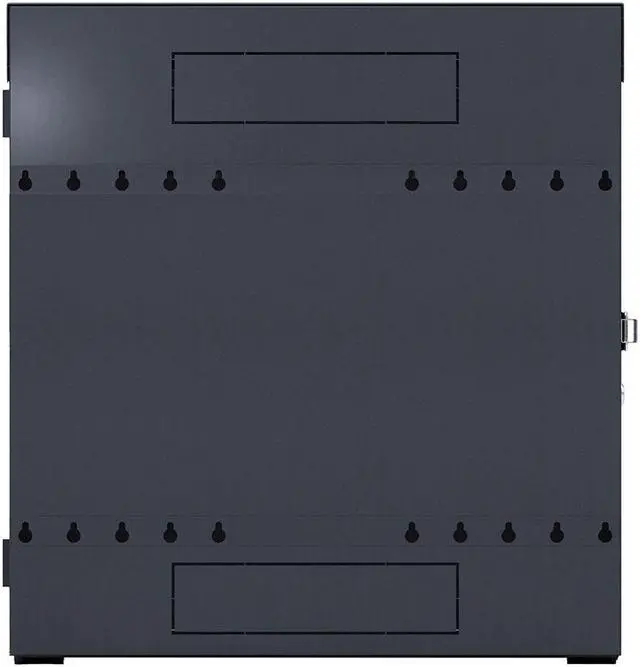 This wall-mount enclosure has anti-theft top and left side locks that provide security and as trouble-free maintenance cable management punch-outs to keep the equipment from overheating. The black low profile wall-mount enclosure allows suspending the cables to keep wires out of the way. The wall-mount enclosure has a dimension of 11.53 x 25.54 x 26.9 inches (LxWxH). The enclosure mounting rails have both M6 and 12-24 thread mounting choices and has a 2U upper patch panel bracket/rail.