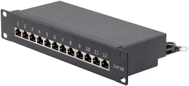 A CAT5E STP patch panel allows you to replace or add additional wires as needed without having to rewire the entire network. This can help save time and effort while doing maintenance or updates. This 10 inch wide 12-port CAT5E STP patch panel from NavePoint features a black finish and is compatible with Krone punch down tools. Our 10 inch wide 1U black patch panel is ANSI/TIA/EIA 568B compliant and measures 5.063 inches L x 10 inches W x 1.764 inches H.
