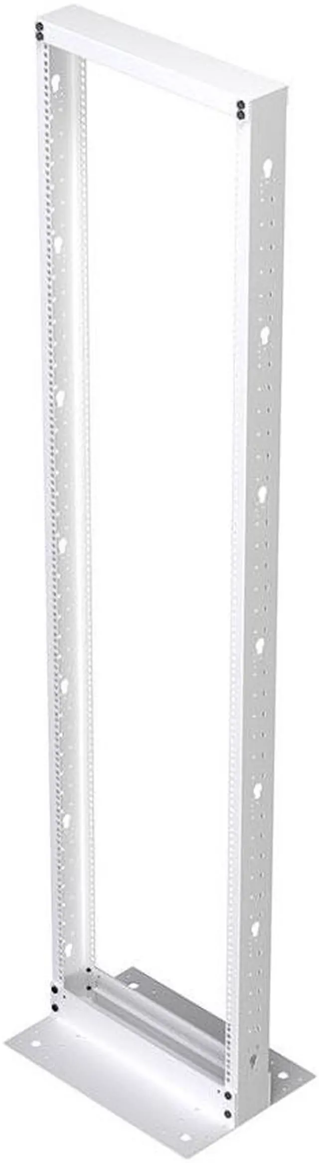 The NavePoint 19-inch wide (RAL9003-signal white) 2 post open-frame rack is the perfect solution to mount your large or small networking equipment in limited spaces, It's accommodating, open design is compatible with most standard 19-inch rackmount equipment and offers easy access to cables and equipment and unobstructed airflow. Constructed of heavy-duty Cold Rolled Steel with a signal white powder coated finish, this rack delivers excellent utility and durability to get your job done right.