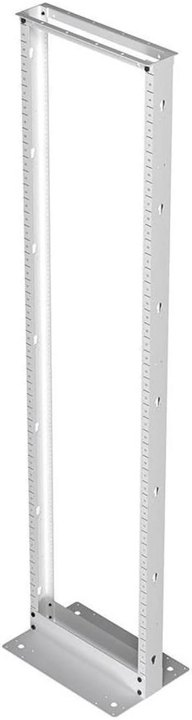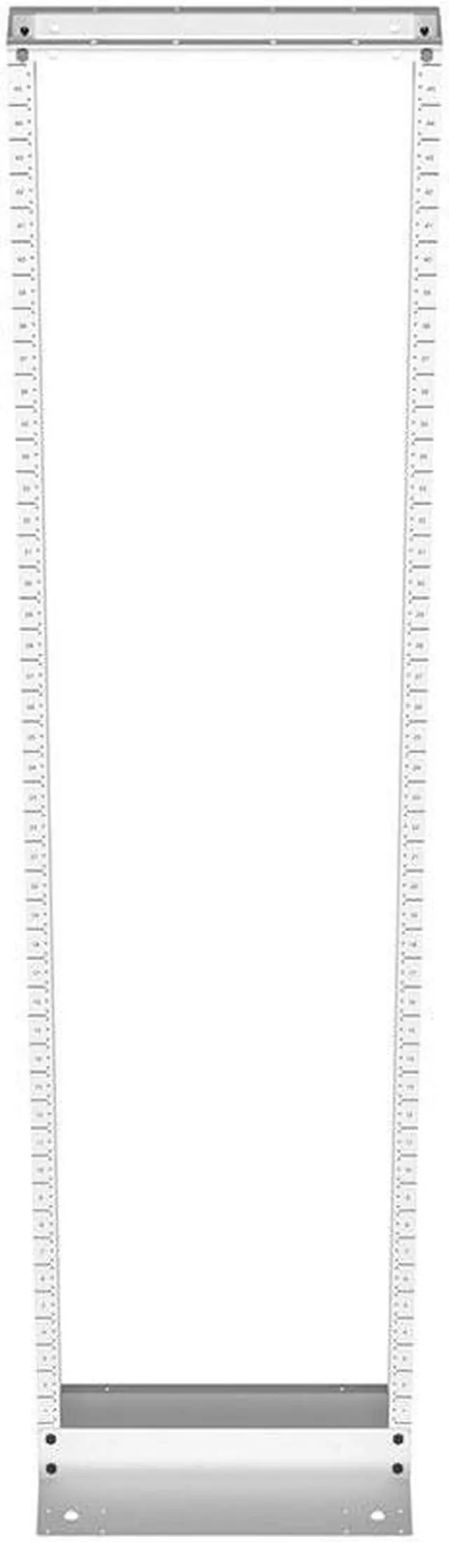 Our 19-inch wide-open frame rack is CE, DIN 41494, EIA/ECA-310-E, and IEC-60297-3-100 compliant and ships flat packed. The package includes all necessary hardware (28 x 12-24 screws) for the bolted assembly construction of this white-colored 45U open-frame rack and has a maximum weight capacity of 661 lbs of evenly distributed weight. This rack is built Threaded (12-24) type mounting rails and has appropriate RU markings. The standardized mounting holes and space offered by the 19-inch wide rack make it simple to mount equipment.