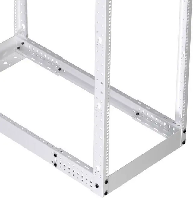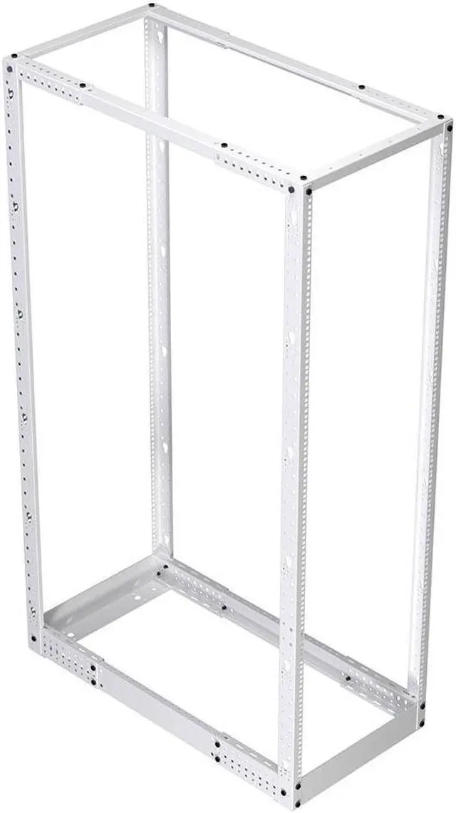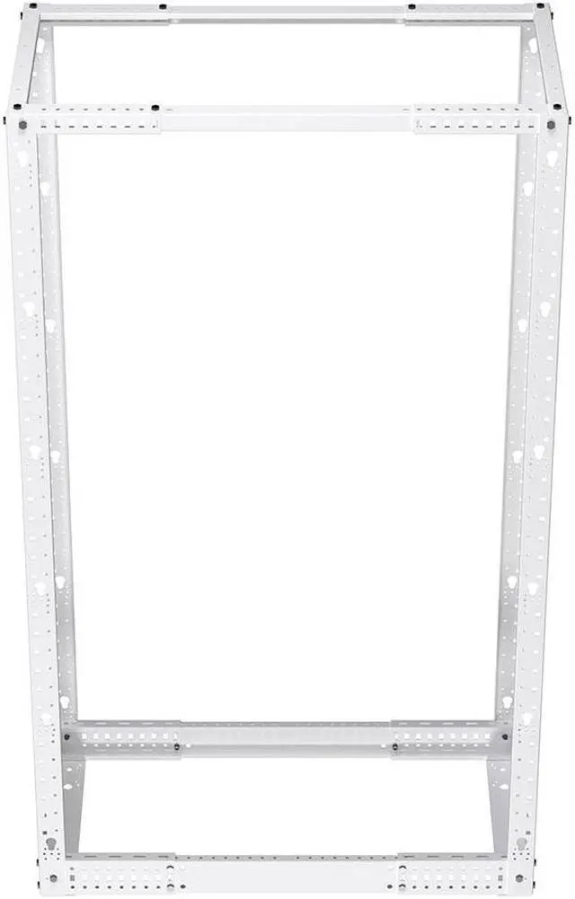 The NavePoint 19-inch wide (RAL9003-signal white) 4 post open-frame rack is the perfect solution to mount your large or small networking equipment in limited spaces, It's accommodating, open design is compatible with most standard 19-inch rackmount equipment and offers easy access to cables and equipment and unobstructed airflow. Constructed of heavy-duty Cold Rolled Steel with a signal white powder coated finish, this rack delivers excellent utility and durability to get your job done right.