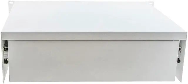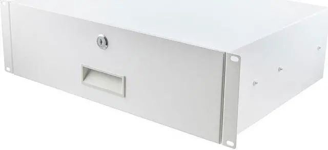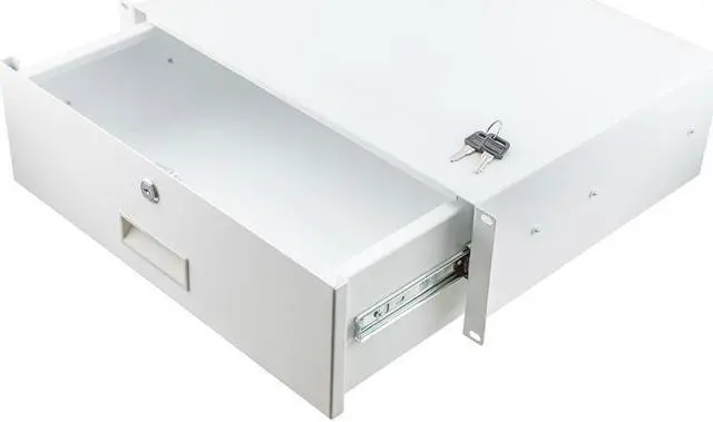 The NavePoint 19-inch rack mount drawer has a professional appearance while providing easy access and secure mounting for all types of equipment. Our 3U drawer offers fully enclosed construction, slides smoothly in and out on rails, and locks in closed position using a key. This rack mount drawer is made of cold rolled steel, that provides strength to securely mount and enclose equipment within an open rack or within cabinets. Weight capacity 66lbs.