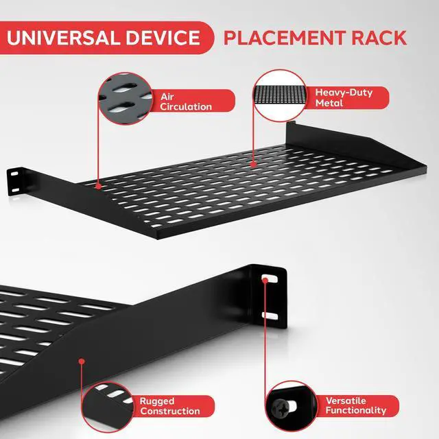 The 10 pcs. 1U Server Rack Shelf is a practical and durable solution for mounting both rack and non-rack equipment. Each shelf, crafted from heavy-duty steel, measures 17.6 x 10.0 and fits seamlessly into standard 19 server racks, with a total assembled size of 19.0 x 10.0 x 1.7 (including mounting brackets). Designed to hold up to 110 lbs. per shelf, this set is perfect for environments requiring dependable support, such as data centers, studios, and on-stage setups. With a punch-out bottom for optimal airflow, this rack shelf promotes excellent ventilation and safety, essential for maintaining equipment in peak condition.