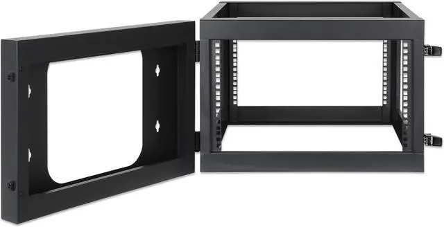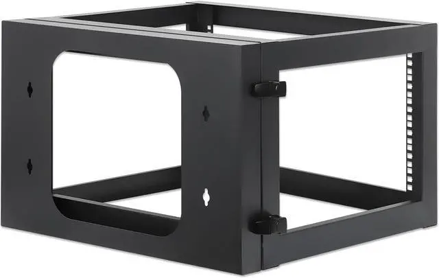 Space-savingThe wall-mountable swing frame is perfect for saving valuable floor space while organizing network and server equipment from telecom, surveillance and audio/video applications where space is at a premium and a full-size floor-standing rack or cabinet cannot be used. The 540 mm (21.26 in.) usable depth of the rack allows for the mounting of shelves, switches, patch panels and more.