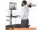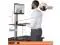 Electric motor design allows easy custom height adjustment with the push of a button. Monitor holder is also height-adjustable with a range of 12-1/2". To switch to sitting position, simply push a button and lower the surface down to desktop level. Safety Sensor stops movement when obstacles are detected under the desk. Sleek wood construction and a durable laminate coating provide years of use with a modern style. Sturdy steel base and aluminum tower are built to last. This standing desk converter rests on top of any desk or table. With no attachments to tie you down, it easily repositions.
