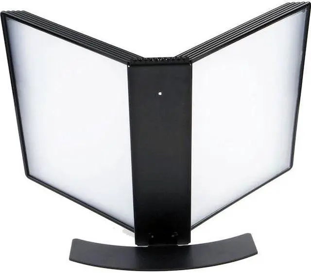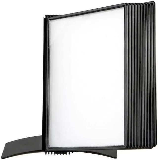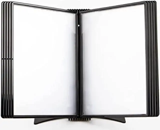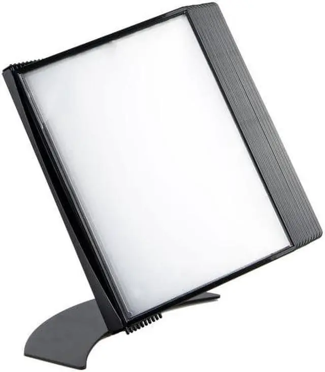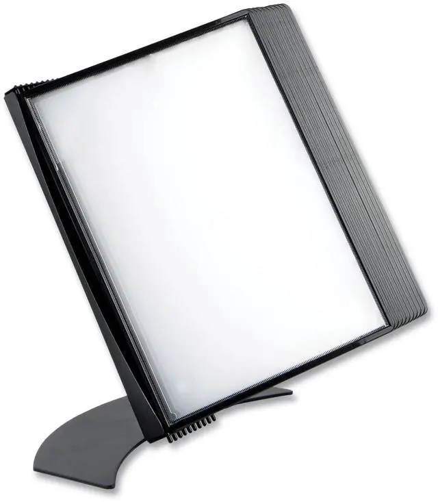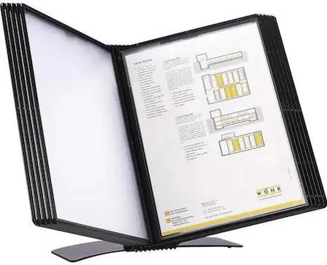 • FIND INFORMATION FAST: Ensure critical information is always available whether at your desk, in a workshop, or at a workstation saving both time and money | PREMIUM QUALITY: Black Edition Desktop Display is made from ABS plastic or metal with environmentally friendly powder coating; Ergonomically correct viewing angle (30 degrees) | DISPLAY POCKETS: 10 black-framed display pockets for 20 total views; Unique Easy-Load pockets have 2-sided opening with corner closure for quick and easy document insertion and removal; Made from 100% polypropylene plastic | INDEXING: Includes clear plastic index tabs with insert dividers to help organize your work and make specific pages easier to find | PRODUCT WARRANTY: Backed by a 10-Year Warranty